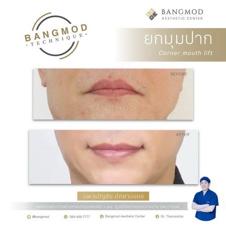 เพื่อตัดแต่งทรงบริเวณมุมปาก ให้มุมปากดูยกขึ้น ซึ่งสามารถผ่าตัดตกแต่งมุมปากไปพร้อมกับการทำปากกระจับ เพื่อให้ได้ผลลัพธ์ที่ดียิ่งขึ้น ให้ทรงปากดูเรียวสวยขึ้นได้ เสมือนกำลังอมยิ้มอยู่ ทำให้ใบหน้าดูหวานและอ่อนโยน  ซึ่งการทำศัลยกรรมยกมุมปากด้วย “เทคนิคบางมด” เป็นการผ่าตัดลงลึกถึงชั้นกล้ามเนื้อที่ใช้ในการยกมุมปาก จึงให้ผลลัพธ์ที่ดูเป็นธรรมชาติ และคงทนยาวนานมาก ด้วยการซ่อนแผลไว้ทางขอบด้านในมุมปาก ซึ่งที่ผ่านมาศูนย์ศัลยกรรมความงามโรงพยาบาลบางมดมีการผ่าตัดศัลยกรรมยกมุมปากด้วยเทคนิคใหม่นี้และให้ผลลัพธ์ที่น่าประทับใจ