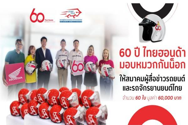 บริษัท ไทยฮอนด้า จำกัด ผู้ผลิตและจัดจำหน่ายรถจักรยานยนต์และเครื่องยนต์อเนกประสงค์ฮอนด้าในประเทศไทย เดินหน้าส่งเสริมความปลอดภัยบนท้องถนนอย่างต่อเนื่อง ในวาระครบรอบ 60 ปี ด้วยการมอบหมวกกันน็อกมาตรฐาน มอก. จำนวน 60 ใบ รวมมูลค่า 60,000 บาท ให้แก่สมาคมผู้สื่อข่าวรถยนต์และรถจักรยานยนต์ไทย (สรยท.)