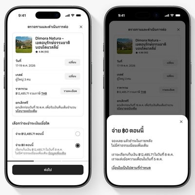 ตอนจอง และจ่ายส่วนที่เหลือเมื่อใกล้ถึงวันเช็คอิน