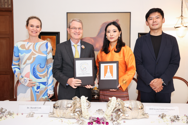 HRH Kesang Chodren Wangchuck, President of GNH Centre Bhutan, Dr. Harald Link, Chairman of B.Grimm, and Ms. Caroline Link, President of B.Grimm Joint Venture Holding Co., Ltd., have signed an extension of their original Memorandum of Understanding (MOU) to strengthen their partnership in promoting and integrating the principles of Gross National Happiness (GNH) into organizational culture. This collaboration aims to enhance well-being and support meaningful engagement.