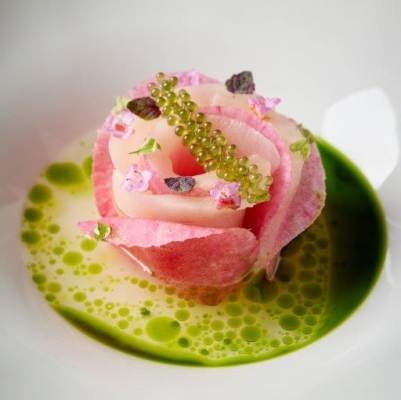 Serata Romantica หรือค่ำคืนแห่งความโรแมนติกถูกถ่ายทอดผ่านเมนูวาเลนไทน์ 8 คอร์ส โดยคัดสรรวัตถุดิบชั้นเลิศจากทั่วโลก มาสร้างสรรค์ใหม่ในสไตล์อิตาเลียนที่เรียบหรูและลงตัว เริ่มต้นค่ำคืนด้วยความสดชื่นจากแชมเปญชั้นดี ตามด้วยซุปใสกงซอเม รสนุ่มนวล และของว่างพอดีคำอย่าง มอร์ทาเดลลากับพิสตาชิโอ ทาร์ตเล็ตล็อบสเตอร์ และเนื้อวากิวทานคู่กับแยมหอมแดง จากนั้นเข้าสู่รสชาติแห่งท้องทะเลด้วยหอยนางรมสดเสิร์ฟพร้อมคาเวียร์ ต่อด้วยปลา Ricciola ในซอสพานซาเนลลาที่ให้ความรู้สึกสดชื่น และหอยเชลล์เนื้อนุ่มในซอสแชมเปญ