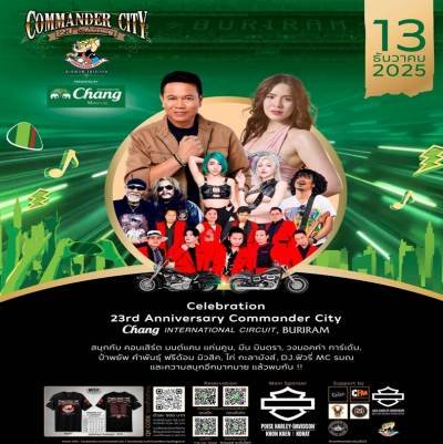 ภายในงานยังมีการฉลองครบรอบ 23 ปี คอมมานเดอร์ซิตี้ ในงาน Chang Presents 23 ปี Commander City วันเสาร์ที่ 13 ธ.ค. เวลา 18.00 น. เป็นต้นไป พบกับมหกรรมดนตรีของชาว 2 ล้อที่ยิ่งใหญ่ที่สุดในประเทศไทย นำโดยนักร้องลูกทุ่ง 1,000 ล้านวิว “มนต์แคน แก่นคูณ” และสาวลูกทุ่งอินดี้เจ้าเสน่ห์ “มีนตรา อินทิรา” พร้อมศิลปินอีกคับคั่ง อาทิ มอคค่า การ์เดน, ไก่ กะละมัง, ป๋าพยัพ คำพันธุ์ และวงฟรีดอม พร้อม 2 สาวสุดเซ็กซี่ DJ ‘ฟิวส์ฟี่ และ MC รมณ โดยบรรยากาศภายในงานมาในธีมย้อนยุค งานวัด ครบครันด้วยซุ้มปาลูกโป่ง สาวน้อยตกน้ำ ชิงช้าสวรรค์ และบูธสินค้าของตกแต่งรถ รวมถึงการแข่งขัน “คอมมานเดอร์ ซิตี้ แดร็ก เรซ” สำหรับประชาชนทั่วไป ชิงถ้วยรางวัล