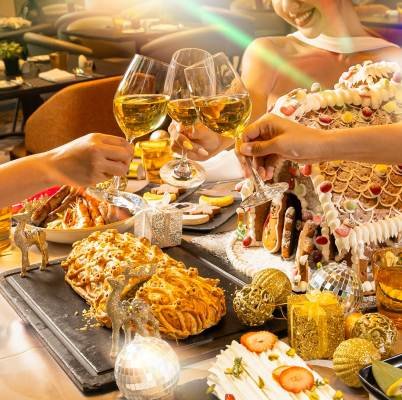 เฉลิมฉลองและดื่มด่ำกับบรรยากาศแห่งคริสต์มาสด้วยบุฟเฟต์สุดอลังการจากทั่วทุกมุมโลก เมนูไฮไลต์ เริ่มจาก แฮมเซอร์ราโน่เสิร์ฟกับเมลอน ค็อกเทลล็อบสเตอร์ ซีฟู้ดออนไอซ์ระดับพรีเมียม เนื้อสันในอบซอสทรัฟเฟิล ฟัวกราส์ซูชิ และไก่งวงอบซอสแครนเบอร์รี่ และเมนูนานาชาติ อื่นๆ อีกมากมาย ที่พร้อมขนขบวนมาให้คุณ ปิดท้ายความอร่อยด้วย ช็อกโกแลตฟาวเท่น คริสต์มาสเค้ก พุดดิ้งสูตรดั้งเดิม และ ไอศกรีมฮาเก้น-ดาสส์
