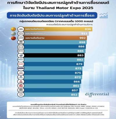 Differential Thailand today released the results of its inaugural 2025 Thailand Motor Exhibition Sales Satisfaction Index (MSSI)SM, conducted during the 2025 Thailand Motor Expo from 28 November to 10 December 2025. This independent study provides an objective, customer-based assessment of automotive sales experiences delivered by brands participating in Thailand’s largest automotive exhibition.