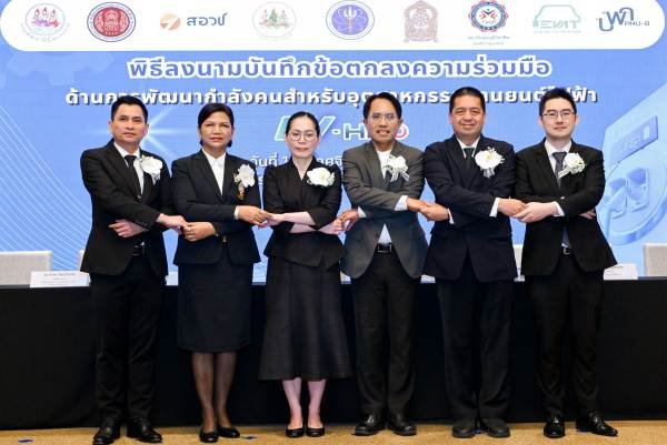 สมาคมยานยนต์ไฟฟ้าไทย เดินหน้าพัฒนาอุตสาหกรรมยานยนต์ไฟฟ้าเมืองไทย ผนึก 5 หน่วยงาน ร่วมลงนามบันทึกข้อตกลงความร่วมมือด้านการพัฒนากำลังคนสำหรับอุตสาหกรรมยานยนต์ไฟฟ้า (EV-HRD) และการประชุมประชาพิจารณ์เพื่อรับฟังความคิดเห็น “โครงการศึกษาเพื่อจัดทำข้อเสนอแนะเชิงนโยบายการพัฒนากำลังคน สำหรับอุตสาหกรรมยานยนต์สมัยใหม่ (EV-HRD)”