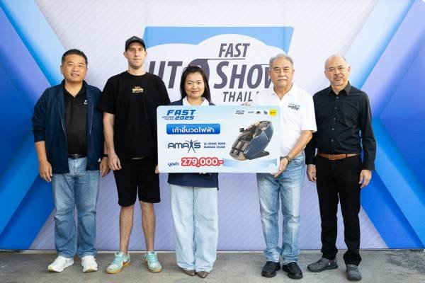 นายพัฒนเดช อาสาสรรพกิจ ประธานจัดงาน “FAST Auto Show Thailand 2025” มหกรรมจำหน่ายรถยนต์ครบวงจร มอบรางวัลใหญ่ “เก้าอี้นวดไฟฟ้าแบรนด์ Amaxs รุ่น ROBO8989 MASSAGE CHAIR” จำนวน 1 รางวัล มูลค่ารวมกว่า 279,000 บาท ให้แก่ผู้โชคดีที่ได้สิทธิ์จากกิจกรรม “ซื้อรถ ลุ้นรับ” ผ่านการจองและซื้อทั้งรถใหม่ป้ายแดง และรถยนต์ใช้แล้วคุณภาพเยี่ยมภายในงาน “FAST Auto Show Thailand 2025” ครั้งที่ 13 จัดขึ้นเมื่อ 2 – 6 กรกฎาคม 2568 ที่ผ่านมา โดยมี นายชลัทชัย ปภัสร์พงษ์ รองประธานจัดงานฝ่ายรถใหม่ และนายอัษฎาวุธ อาสาสรรพกิจ รองประธานจัดงานฝ่ายรถใช้แล้ว ร่วมแสดงความยินดีและเป็นพยานในการมอบรางวัลให้แก่ นางณัฏฐนันท์ บาร์โลว ผู้โชคดีจากกิจกรรมในงานดังกล่าว