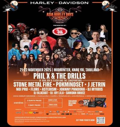 Harley-Davidson ขอน้อมถวายความอาลัยอย่างอย่างหาที่สุดมิได้ ต่อการเสด็จสวรรคตของสมเด็จพระนางเจ้าสิริกิติ์ พระบรมราชินีนาถ พระบรมราชชนนีพันปีหลวงทั้งนี้ Asia Harley Days 2025 ครั้งที่ 4 โดย Harley-Davidson ร่วมกับพันธมิตรอย่างโซดาสิงห์ จะยังจัดขึ้นตามกำหนดเดิม 21 – 22 พฤศจิกายน 2568 ณ Midwinter เขาใหญ่ โดยจะมีการปรับเปลี่ยนกิจกรรมบางส่วน เพื่อถวายความอาลัยในช่วงเวลาไว้ทุกข์อย่างเหมาะสม และจะมีการจัดพิธีถวายความอาลัยในพิธีเปิดงานในวันที่ 21 พฤศจิกายน เพื่อน้อมรำลึกในพระมหากรุณาธิคุณอันหาที่สุดมิได้ของสมเด็จพระนางเจ้าสิริกิติ์ พระบรมราชินีนาถ พระบรมราชชนนีพันปีหลวง