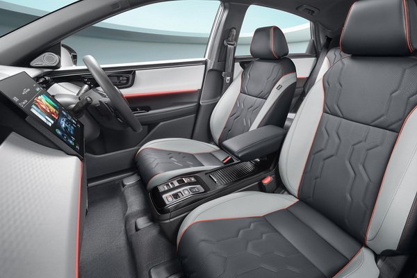 Honda e:N2 มาพร้อมดีไซน์สปอร์ตเอสยูวีท้ายลาดแบบ Fastback เส้นสายเฉียบคม โดดเด่นด้วยกระจังหน้าและกันชนหน้าในดีไซน์ Grille-less เอกลักษณ์ของรถยนต์ไฟฟ้า พร้อมกระจกด้านหลังแบบ Privacy กระจกที่นั่งด้านหน้าและด้านหลังแบบกันเสียงซึ่งติดตั้งเป็นครั้งแรกของรถยนต์ฮอนด้าในไทย! ห้องโดยสารกว้างขวาง ครบครันด้วยเทคโนโลยีเพื่อความสะดวกสบาย อาทิ เบาะนั่งคู่หน้าแบบระบายอากาศ เบาะนั่งด้านคนขับปรับไฟฟ้า 8 ทิศทาง พร้อมระบบบันทึกตำแหน่งเบาะนั่งของผู้ขับขี่ พร้อมเลื่อนอัตโนมัติเวลาขึ้น – ลงรถ (Easy Entry / Exit)