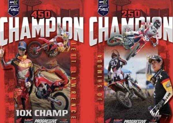 ในการแข่งขันคลาส 250SMX ด้วยผลงานของ “โจ ชิโมดะ” ด้วยตัวแข่ง Honda CRF250R เก็บชัยชนะในเรซที่ 1 และโพเดียมอันดับที่ 2 ในเรซที่สอง บวกคะแนนสะสมผงาดคว้าแชมป์โลกในคลาส 250SMX ไปครองได้สำเร็จ ตอกย้ำความแข็งแกร่งของฮอนด้าในสังเวียนทางฝุ่นและสุดยอดตัวแข่งจาก CRF Series