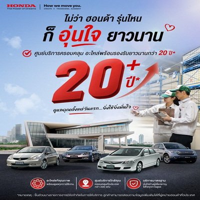 “ไม่ว่าฮอนด้ารุ่นไหน ก็อุ่นใจยาวนาน” คือคำมั่นสัญญาที่ฮอนด้ายึดถือมาโดยตลอด เพื่อสร้างความเชื่อมั่นว่า ฮอนด้าจะยังคงเป็นแบรนด์ที่อยู่เคียงข้างคนไทย พร้อมก้าวไปข้างหน้าและเติบโตอย่างยั่งยืนร่วมกับสังคมไทยในทุกยุคสมัย