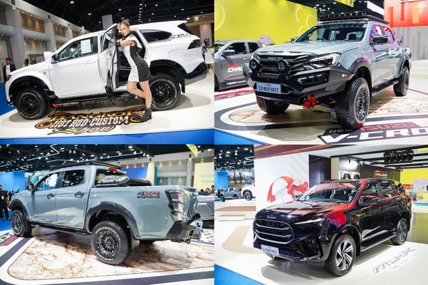 โดยอีซูซุได้นำรถมาจัดแสดงรวมทั้งสิ้น 15 คัน ทั้งรุ่นมาตรฐานยอดนิยมครบทุกไลน์อัพ จำนวน 10 คัน นำโดยรถปิกอัพอีซูซุ ดีแมคซ์ และรถยนต์นั่งอเนกประสงค์มิว-เอ็กซ์ รวมถึงอีกหนึ่งทางเลือกให้กับลูกค้าชาวไทยอย่างรถปิกอัพไฟฟ้า “อีซูซุ ดีแมคซ์ EV” ที่ได้นำมาจำหน่ายครั้งแรกภายในงาน และเพิ่มความสปอร์ตเร้าใจกับรถตกแต่งพิเศษหลากสไตล์จำนวน 5 คัน ที่ออกแบบมาเพื่อสร้างแรงบันดาลใจและสะกดทุกสายตา นำทัพโดย New! ISUZU V-CROSS 4×4 “The One & Only” และ MU-X “The Next Peak” 4WD ครั้งแรกกับเครื่องยนต์ 2.2 Ddi MAXFORCE ในระบบขับเคลื่อนสี่ล้อ ที่เปิดตัวเมื่อปลายเดือนกุมภาพันธ์มาโชว์ภายในงาน พร้อมด้วยไฮไลต์สำคัญอย่าง รถปิกอัพอีซูซุ ดีแมคซ์ รถแข่งต้นแบบที่จะใช้ในรายการ “ISUZU CHALLENGE THAILAND 2026” และ ISUZU V-CROSS 4×4 เครื่องยนต์ 2.2 Ddi MAXFORCE ที่อีซูซุได้ร่วมมือกับ WILD ผู้ผลิตชิ้นส่วนชื่อดังของไทยในการออกแบบอุปกรณ์ตกแต่งพิเศษรอบคันโดยเฉพาะ และรถยนต์นั่งอเนกประสงค์ MU-X “THE NEXT PEAK” 2.2 Ddi MAXFORCE รุ่น RS สี Dolomite White Pearl มาตกแต่งเพิ่มความดุดันขั้นสุดในสไตล์ Top Secret SPL ครั้งแรกของโลกกับการเผยโฉมโปรเจกต์ “TOP Secret The First PPV” และ รถยนต์นั่งอเนกประสงค์ MU-X “The Next Peak” 2.2 Ddi MAXFORCE รุ่น Active สี Dolomite White Pearl ที่ร่วมมือกับ Bangkok Hot Rod Custom Show ผู้จัดงานประกวด Custom Car ที่ใหญ่ที่สุดในประเทศไทย มาพลิกโฉมสะกดทุกสายตาด้วยชุดแต่งพิเศษคอนเซปต์ “Premium Tough”