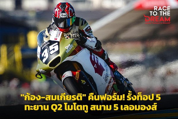 “ก้อง” สมเกียรติ ยอดนักบิดหมายเลข 35 จาก อิเดมิตสึ ฮอนด้า ทีม เอเชีย ทะยานคว้าท็อป 5 ในการซ้อมรวมของศึก โมโตทู เวิลด์ แชมเปี้ยนชิพ 2024 สนาม 5 รายการ เฟรนช์ กรังด์ปรีซ์ ด้วยเวลาต่อรอบ 1 นาที 35.231 วินาที ตามหลังจ่าฝูงเพียง 0.363 วินาที ตีตั๋วเข้าสู่การควอลิฟายรอบ Q2 แบบอัตโนมัติ สร้างโอกาสไล่ล่าอันดับในกลุ่มหน้าอีกครั้ง