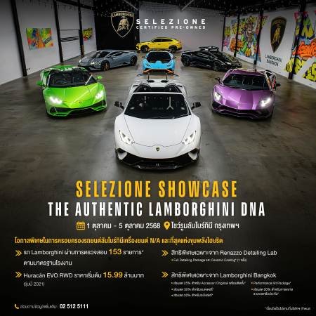 สำหรับแฟนพันธุ์แท้ค่ายวัวกระทิงดุเตรียมพบกับรถลัมโบร์กินีหลากหลายรุ่น อาทิ Aventador Ultimae, Huracan STO, Huracan Evo, Huracan Tecnica และ Urus Performante ระหว่างวันที่ 1-5 ตุลาคม 2568 ณ โชว์รูมเรนาสโซ มอเตอร์ ถนนวิภาวดีรังสิต