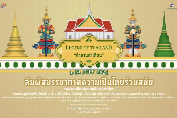 เชิญสัมผัสบรรยากาศความเป็นไทยร่วมสมัย ในงาน “Legend of Thailand ตำนานท่าเตียน” คัดสรรร้านค้าของดีสมุนไพรไทย ยอดนิยม อาทิ ยาหม่อง ยาดม น้ำมันนวด สูตรต้นตำรับไทย และสินค้าของที่ระลึกผลิตภัณฑ์ของดีเมืองสยาม ได้แก่ สินค้าแฟชั่นกางเกงมวยไทย กางเกงลายช้าง ฯลฯ นอกจากนี้ยังมีเมนูอาหารคาวหวาน แสนอร่อยอีกมากมาย เช่น ผัดไทยกุ้งแม่น้ำ ต้มยำกุ้ง มะม่วงน้ำปลาหวาน ข้าวเหนียวมะม่วงน้ำดอกไม้ น้ำมะพร้าวสด และน้ำผลไม้สดฉ่ำปั่นหวานชื่นใจ