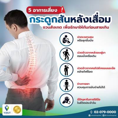 หลายคนอาจคิดว่าปัญหากระดูกเสื่อมเป็นเรื่องของคนที่อายุเยอะเท่านั้น แต่ความจริงแล้วใคร ๆ ก็มีโอกาสเป็นได้ โดยเฉพาะคนที่ชอบยกของหนัก ก้มตัวบ่อย ขยับคอมาก ก็อาจเร่งให้เกิด “โรคกระดูกสันหลังเสื่อม” ที่ทำให้เกิดอาการปวดหลัง ปวดร้าวลงขา หนักที่สุดเส้นประสาทอาจถูกกดทับจนมีอาการอ่อนแรงหรือควบคุมการขับถ่ายไม่ได้ ที่น่ากังวลกว่านั้นคือ เมื่อกระดูกสันหลังเสื่อมกดทับเส้นประสาทจนมีอาการอ่อนแรงเป็นเวลานาน แม้จะผ่าตัดรักษาก็ไม่สามารถกลับมาใช้งานได้ดีเหมือนเดิม วันนี้ นพ.วรายุทธ แสงสุวรรณ ศัลยแพทย์กระดูกและข้อ แพทย์ชำนาญการด้านกระดูกสันหลัง รพ.วิมุต จะพาไปรู้จักกับโรคกระดูกสันหลังเสื่อม เพื่อให้เราได้เข้าใจแนวทางการดูแลกระดูกสันหลังให้แข็งแรงไปนาน ๆ