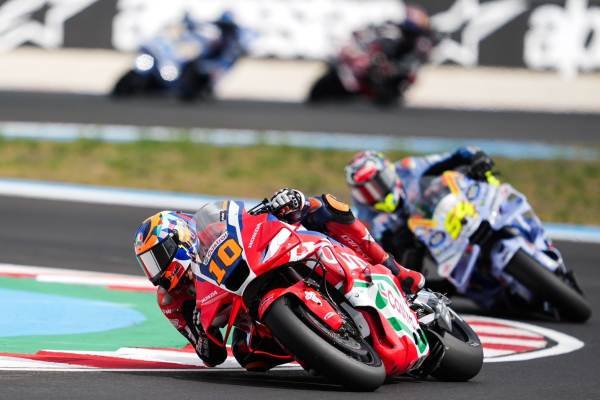 “ลูก้า มารินี” หมายเลข 10 ยอดนักบิดอิตาเลียนจาก ฮอนด้า เอชอาร์ซี สร้างผลงานโดดเด่น หลังพารถแข่ง Honda RC213V ยกระดับแบบก้าวกระโดดบิดคว้าอันดับ 4 จากรอบ “สปรินต์เรซ” ใน ศึก โมโตจีพี 2025 สนาม 14 รายการ ฮังกาเรียน กรังด์ปรีซ์ ขณะที่ “โจอัน เมียร์” หมายเลข 36 ทีมเมทชาวสแปนิชตามเข้าป้ายอันดับ 6 เก็บแต้มมาได้ทั้งคู่จากเรซสุดมันส์ ที่ บาลาตอน พาร์ค เซอร์กิต ประเทศฮังการี เมื่อวันเสาร์ที่ 23 สิงหาคมที่ผ่านมา