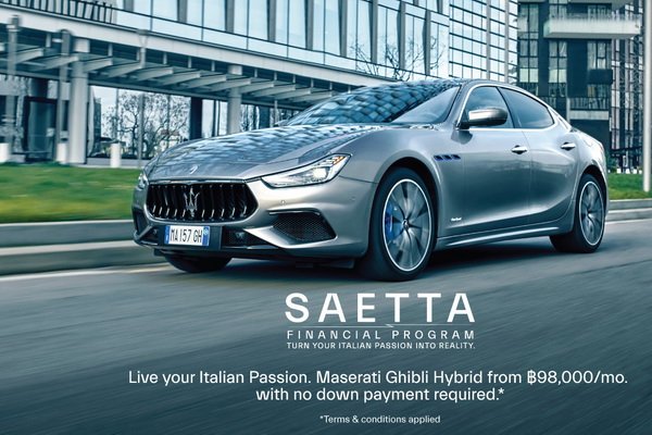 นับเป็นโอกาสพิเศษ สำหรับผู้ที่ชื่นชอบยนตรกรรมสปอร์ตแห่งเมืองโมเดนา โดย ‘SAETTA FINANCIAL PROGRAM’ เปิดโอกาสให้ออกรถ ‘กิบลี ไฮบริด’ (Ghibli Hybrid) หรือ ‘เลอวานเต้’ (Levante) ได้ง่ายยิ่งขึ้น พร้อมหยิบยื่นหลากหลายสิทธิ์ประโยชน์สุดคุ้มค่า