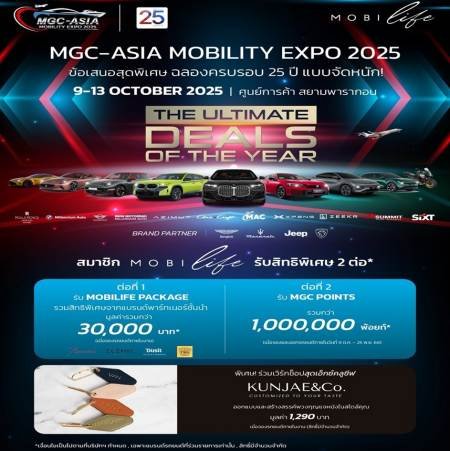 มหกรรมจัดแสดงและจำหน่ายยนตรกรรมแบรนด์ดังระดับโลก ‘MGC-ASIA MOBILITY EXPO 2025’ จัดขึ้นอย่างยิ่งใหญ่ บริเวณชั้น M, 1 และ 2 ศูนย์การค้าสยามพารากอน ตั้งแต่วันนี้ ถึง 13 ตุลาคม 2568