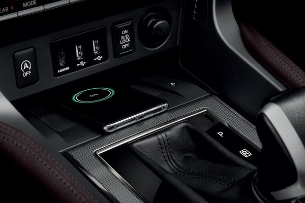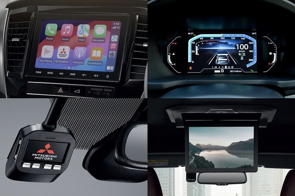 อุปกรณ์อำนวยความสะดวก ที่เติมความรื่นรมย์ภายในห้องโดยสาร ประกอบด้วย จอแสดงผลการขับขี่ใหม่แบบ Full Digital ขนาด 8 นิ้ว คมชัด ใช้งานง่าย ระบบเครื่องเสียง Mitsubishi Power Sound System ชุดเครื่องเสียงระดับพรีเมียม 8 ลำโพง พร้อมพาวเวอร์แอมป์ ให้เสียงชัดรอบทิศทาง หน้าจอบนเพดานสำหรับผู้โดยสารตอนหลัง ขนาด 12.1 นิ้ว พร้อมรีโมท หูฟังอินฟราเรด และเชื่อมต่อ HDMI และ USB หน้าจอระบบสัมผัส 8 นิ้ว รองรับการเชื่อมต่อผ่านสมาร์ทโฟน (SDA) Apple Carplay & Android Auto และระบบเชื่อมต่อ Bluetooth แฮนด์ฟรีและรองรับระบบสั่งการด้วยเสียง ระบบเบรกมือไฟฟ้าและระบบหน่วงแรงเบรกอัติโนมัติ (Brake Auto Hold) และประตูท้ายไฟฟ้าพร้อมระบบแฮนด์ฟรี ที่สามารถเปิด-ปิดได้ 5 รูปแบบ