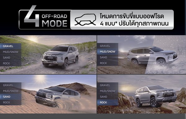 ด้วยสโลแกน “Power in Your Control ไปสู่ทุกจุดหมายด้วยพลังการควบคุมที่เหนือระดับ” มิตซูบิชิ ปาเจโร สปอร์ต ใหม่! รุ่นปี 2024 มาพร้อมขุมกำลังใหม่ “ไฮเปอร์พาวเวอร์ (Hyper Power)” เครื่องยนต์ดีเซลคอมมอนเรล วีจี เทอร์โบ อินเตอร์คูลเลอร์ เทอร์โบ 4 สูบ ความจุ 2.4 ลิตร พร้อมหัวฉีดอิเล็กทรอนิกส์แบบคอมมอนเรลเจเนอเรชันใหม่ ทรงพลังและเป็นมิตรกับสิ่งแวดล้อมด้วยมาตรฐานไอเสียระดับยูโร 5 (Euro 5) สร้างพละกำลังสูงสุด 184 แรงม้า ที่ 3,500 รอบต่อนาที แรงบิดสูงสุด 430 นิวตันเมตร ที่ 2,250 – 2,500 รอบต่อนาที ส่งกำลังด้วยระบบเกียร์อัตโนมัติใหม่ ประสานการทำงานกับเครื่องยนต์ได้อย่างลงตัว พร้อมโหมดการขับขี่แบบออฟโรด 4 รูปแบบ ได้แก่ Gravel, Mud/Snow, Sand, Rock ตอบสนองการขับขี่ได้อย่างยอดเยี่ยม พร้อมประหยัดน้ำมันกว่าเดิม