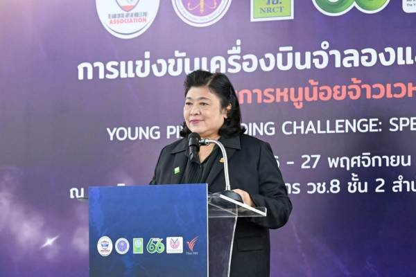 สำนักงานการวิจัยแห่งชาติ (วช.) กระทรวงการอุดมศึกษา วิทยาศาสตร์ วิจัยและนวัตกรรม ร่วมกับสมาคมกีฬาเครื่องบินจำลองและวิทยุบังคับ จัดการแข่งขันเครื่องบินจำลองและวิทยุบังคับ (รอบพิเศษ) “หนูน้อยจ้าวเวหา Young Pilot Coding Challenge : Special Edition” เนื่องในโอกาสวันคล้ายวันสถาปนา วช. ครบรอบ 66 ปี ณ ลานนิทรรศการหมุนเวียน วช. 8 ชั้น 2 สำนักงานการวิจัยแห่งชาติ โดยมี ดร.วิภารัตน์ ดีอ่อง ผู้อำนวยการสำนักงานการวิจัยแห่งชาติ เป็นประธานในพิธี พร้อมด้วยนางสาววันทนีย์ เหลืองวิสุทธิ์ศิริ เลขานุการสมาคมกีฬาเครื่องบินจำลองและวิทยุบังคับ ผู้บริหาร และผู้ทรงคุณ วช. ร่วมให้กำลังใจและต้อนรับผู้เข้าแข่งขันจากทั่วประเทศ ระหว่าง 26 – 27 พฤศจิกายน 2568 ณ ลานนิทรรศการหมุนเวียน วช. 8 ชั้น 2 สำนักงานการวิจัยแห่งชาติ