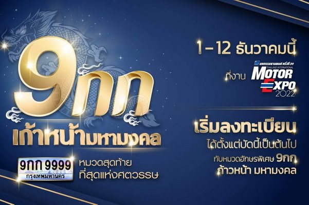 กรมการขนส่งทางบกจึงขอเรียนเชิญทุกท่านเข้ามาเยี่ยมชมบูธกรมการขนส่งทางบก (เลขที่ G06-1) ภายในงาน Thailand International Motor Expo 2022 IMPACT เมืองทองธานี Challenger 1-3 ได้ตั้งแต่วันที่ 1-12 ธันวาคม 2565 โดยท่านจะได้พบกับกิจกรรมการประชาสัมพันธ์สร้างการรับรู้การประมูล ทะเบียนรถเลขสวย หมวดอักษร 9กก ที่สนุกสนานได้สาระอย่างมากมายจากผู้เชี่ยวชาญด้านศาสตร์ตัวเลขเหล่าเซเลป-ดารา มาร่วมแชร์ประสบการณ์เกี่ยวกับศาสตร์ตัวเลข พร้อมรับของที่ระลึกมากมาย ตลอดงาน 12 วันเต็ม รายละเอียดเพิ่มเติมที่ https://www.tabienrod.com/