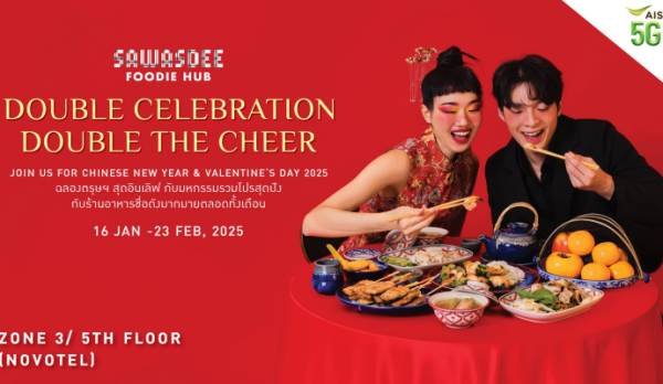 พลาดไม่ได้! ชวนมาร่วมอิ่มอร่อยสุดคุ้มกับโปรโมชั่นพิเศษ Double Celebration Double The Cheer พร้อมรับชมการแสดงวงกลองยาวและนางรำประยุกต์ทุกวันศุกร์และวันเสาร์ ช่วงเวลา 12.00 – 15.00 น. ตั้งแต่วันนี้จนถึง 23 กุมภาพันธ์ 2568 ที่โซน Sawasdee Foodie Hub ชั้น 5 ศูนย์การค้าแพลทินัม