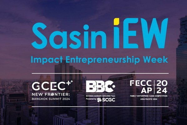 สถาบันบัณฑิตบริหารธุรกิจ ศศินทร์ แห่งจุฬาลงกรณ์มหาวิทยาลัย (Sasin School of Management) เตรียมจัดงาน Sasin Impact Entrepreneurship Week 2024 (SasinIEW) ระหว่างวันที่ 19-23 มิถุนายน 2567 โดยมีความมุ่งหมายที่จะส่งเสริมความร่วมมือระหว่างผู้มีส่วนได้ส่วนเสียหลากหลายฝ่าย ทั้งผู้ประกอบการ สตาร์ทอัพ นักลงทุน ผู้กำหนดนโยบาย นิสิตนักศึกษา ภาคธุรกิจ และประชาชนทั่วไป เนื้อหาหลักของงานมุ่งส่งเสริมการเป็นผู้ประกอบการ นวัตกรรม การเปิดกว้าง ผลกระทบเชิงบวกจากภาคธุรกิจ และความยั่งยืน