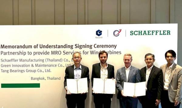 Schaeffler, the motion technology company, announces the signing of a Memorandum of Understanding (MOU) with Green Innovation & Maintenance (GIM), a leading wind turbine service provider in Thailand, and Tang Bearing, a valued trading and technical partner. The strategic partnership aims to enhance maintenance, repair, and overhaul (MRO) services for wind turbines in Thailand.