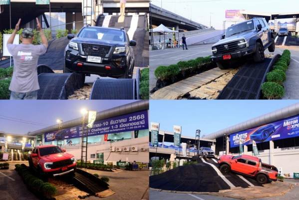 ส่วนภายนอกอาคาร มีสนามจำลองสถานการณ์วิบาก ให้ทดลองนั่งรถ 4×4 ที่ขับโดยผู้เชี่ยวชาญ ผู้สนใจสามารถสอบถาม และลงทะเบียนได้ที่บูธ โรงเรียนพัฒนาทักษะการขับขี่รถขับเคลื่อน 4 ล้อ