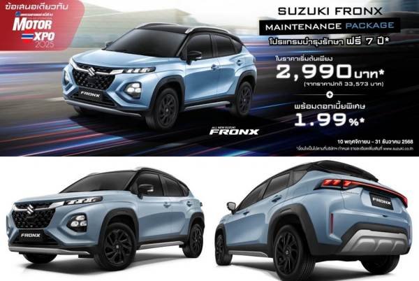 ซูซูกิ มอเตอร์ ประเทศไทย รุกตลาดต้อนรับไฮซีซัน อัดแคมเปญรับ Motor Expo 2025 สุดเร้าใจ รับสิทธิ์ซื้อ SUZUKI FRONX MAINTENANCE PACKAGE นาน 7 ปี มอบสิทธิประโยชน์ในราคาเริ่มต้นเพียง 2,990 บาท เท่านั้น เมื่อจอง ALL NEW SUZUKI FRONX เติมเต็มทุกความคุ้มค่า ยกระดับทุกความมั่นใจ