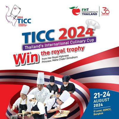 กลับมาอีกครั้งกับการแข่งขันสุดยอดเชฟรายการใหญ่ที่สุดประจำปีของประเทศไทย Thailand’s International Culinary Cup (TICC) 2024 ครั้งที่ 28 ชิงถ้วยพระราชทานสมเด็จพระกนิษฐาธิราชเจ้า กรมสมเด็จพระเทพรัตนราชสุดาฯ สยามบรมราชกุมารี และเงินรางวัลรวมกว่า 70,000 บาท