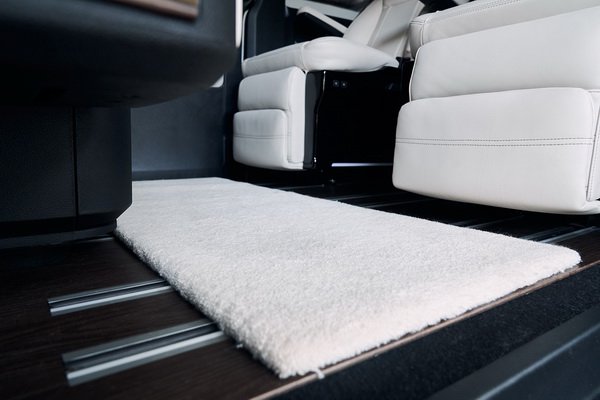นอกจากนี้ Victor Braun ได้เลือกโทนสีสำหรับการตกแต่งองค์ประกอบส่วนอื่นๆ ภายในห้องโดยสารให้สวยงาม และลงตัว เหมาะกับสีของ Mother of Pearl คือ การเลือกสีของเบาะหนังแท้ Nappa ที่มีความเรียบเนียน เป็นสี Ivory หรือสีขาวงาช้าง พร้อมตกแต่งบริเวณรอบรถด้วยหนัง Nappa สีขาวงาช้าง ช่วยสร้างความโอ่โถงให้ห้องโดยสาร รวมทั้งตกแต่งพรมสีขาวงาช้างบริเวณที่นั่ง Premium Captain Seat เพื่อเพิ่มความหรูหราและสัมผัสที่นุ่มนวล โดยพรมที่เลือกใช้เป็น Anti-viral  Mat ด้วยเทคโนโลยี  NAV-TEX  (Nano Antiviral Textile Technology) เป็นนวัตกรรมที่ช่วยยับยั้งเชื้อโรค เชื้อไวรัส รวมถึงเชื้อ Covid-19 สูงถึง 99% ผ่านการรับรองคุณสมบัติ จากสถาบันวิจัย ชั้นนำทั่วโลก MSL, Nelson Labs, SGS และ OEKO-TEX Standard 100 จึงมั่นใจได้ว่า จะไม่ก่อให้เกิด เชื้อโรค และมีความปลอดภัยด้านสุขอนามัยตลอดการเดินทาง