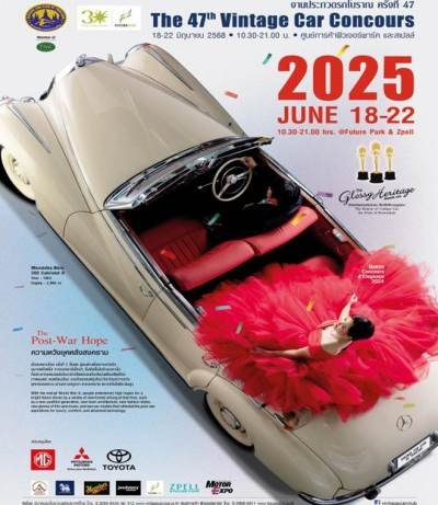 สมาคมรถโบราณแห่งประเทศไทย ร่วมกับ ศูนย์การค้าฟิวเจอร์พาร์ค และสเปลล์ จัด “งานประกวดรถโบราณ ครั้งที่ 47” ภายใต้แนวคิด “ความหวังยุคหลังสงคราม-The Post-War Hope” ชมรถโบราณทรงคุณค่า หายากกว่า 100 คัน พร้อมกิจกรรมดึงคนรุ่นใหม่ ณ ศูนย์การค้าฟิวเจอร์พาร์ค และสเปลล์ ระหว่างวันที่ 18-22 มิถุนายน 2568