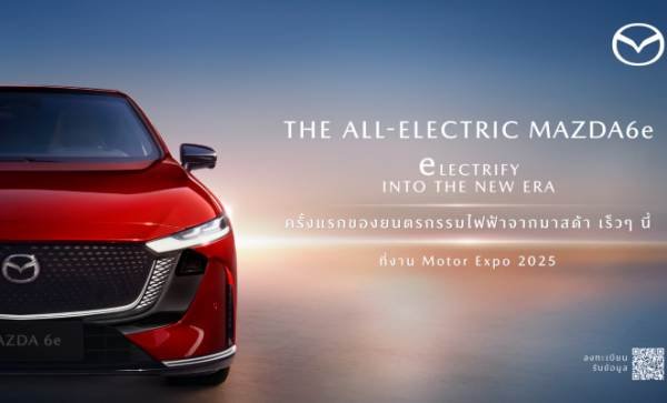 มาสด้า เซลส์ ประเทศไทย ปล่อย Teaser เผยภาพยนตร์โฆษณา “The All-Electric Mazda6e” รถยนต์ไฟฟ้ารุ่นแรกจากมาสด้า ที่สะท้อนถึงก้าวแรกในการเข้าสู่ยุคใหม่ของเทคโนโลยีพลังงานไฟฟ้าในประเทศไทย ตามคอนเซ็ปต์ “eLECTRIFY INTO THE NEW ERA” พร้อมเชิญชวนลูกค้าไปสัมผัสได้เร็ว ๆ นี้ ในงานไทยแลนด์ อินเตอร์เนชั่นแนล มอเตอร์ เอ็กซ์โป 2025 โดยงานแถลงข่าวเปิดบูธมาสด้าจะมีขึ้นในวันที่ 28 พฤศจิกายน 2568 เวลา 14:45 – 14:55 น. ลูกค้าที่สนใจสามารถเข้าชมและจองรับสิทธิพิเศษเพื่อเป็นเจ้าของได้ก่อนใคร ตั้งแต่วันที่ 29 พ.ย. 68 – 10 ธ.ค. 68 ณ อาคารชาเลนเจอร์ 1 – 3 อิมแพ็ค เมืองทองธานี