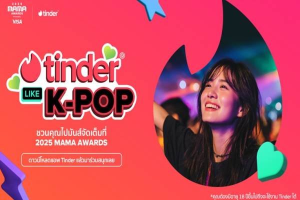 Tinder ร่วมกับ 2025 MAMA AWARDS เวทีประกาศรางวัล K-Pop อันดับ 1 ของโลก เพื่อมอบโอกาสให้แฟน ๆ ได้เชียร์ศิลปินที่ชื่นชอบ และพร้อมลุ้นรับทริปไปชมบรรยากาศในงานแบบใกล้ชิดที่ฮ่องกง!